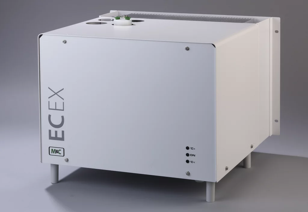 The M&C gas coolers type EC are used in gas analysis applications to lower the dew point of humid gases in order to prevent condensation in the analyzer. By setting an extremely stable gas outlet dew point, water vapor cross-sensitivity and volumetric errors are avoided.