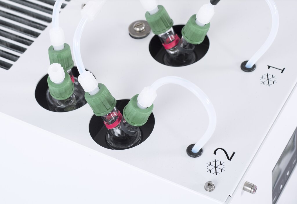 Optionally: up to 3 peristaltic pumps SR25.2, liquid particle filter to separate aerosols, liquid alarm sensor, flow meter, flow sensor, purging of the heat exchanger in the inactive ultra-low cooling stage (4th peristaltic pump)